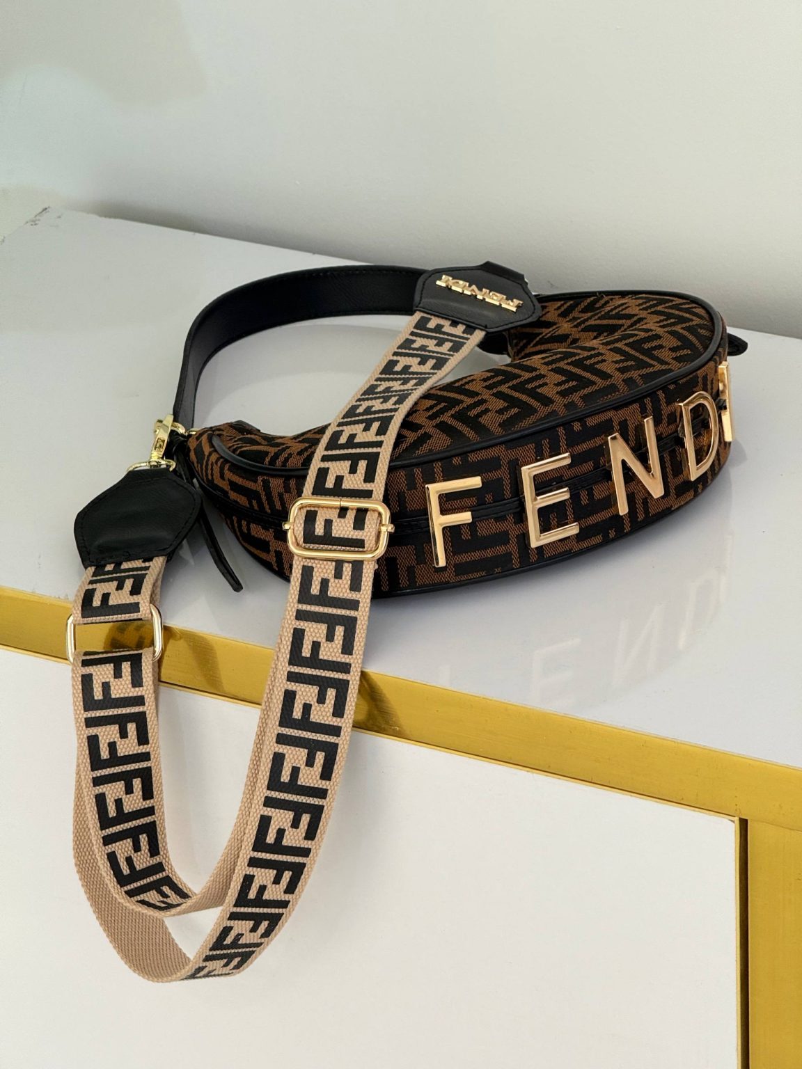کیف زنانه فندی (FENDI) یکی از شیک ترین کیف های زنانه هست که هم دستی و هم دوشی هست. بند بلند دارد . و حک یراق آلات برند روی محصول هست.